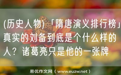 易優(yōu)作文網(wǎng)——(歷史人物)「隋唐演義排行榜」真實(shí)的劉備到底是個什么樣的人?諸葛亮只是他的一張牌