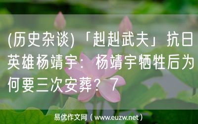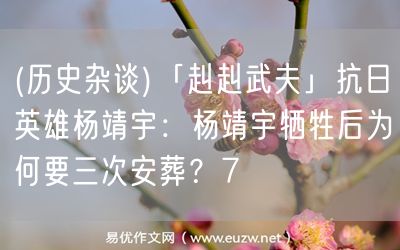 易優(yōu)作文網(wǎng)——(歷史雜談)「赳赳武夫」抗日英雄楊靖宇:楊靖宇犧牲后為何要三次安葬?7