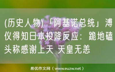 易優(yōu)作文網(wǎng)——(歷史人物)「阿基諾總統(tǒng)」溥儀得知日本投降反應(yīng):跪地磕頭稱感謝上天 天皇無恙