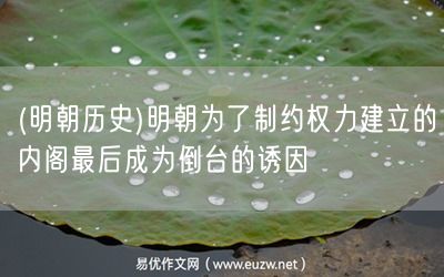 易優(yōu)作文網(wǎng)——(明朝歷史)明朝為了制約權(quán)力建立的內(nèi)閣最后成為倒臺(tái)的誘因