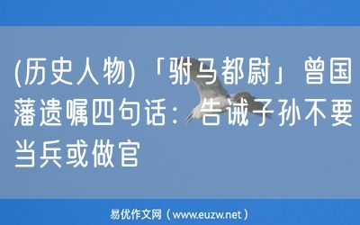 易優(yōu)作文網(wǎng)——(歷史人物)「駙馬都尉」曾國(guó)藩遺囑四句話:告誡子孫不要當(dāng)兵或做官