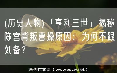 易優(yōu)作文網(wǎng)——(歷史人物)「亨利三世」揭秘陳宮背叛曹操原因:為何不跟劉備?