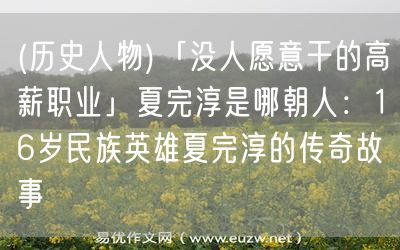 易優(yōu)作文網(wǎng)——(歷史人物)「沒人愿意干的高薪職業(yè)」夏完淳是哪朝人:16歲民族英雄夏完淳的傳奇故事