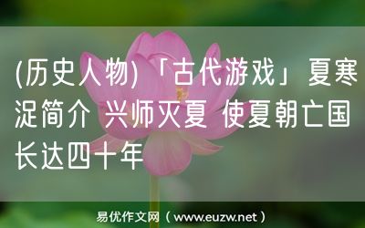 易優(yōu)作文網(wǎng)——(歷史人物)「古代游戲」夏寒浞簡介 興師滅夏 使夏朝亡國長達四十年