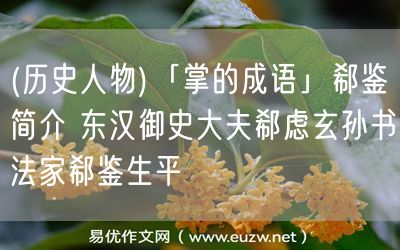 易優(yōu)作文網(wǎng)——(歷史人物)「掌的成語」郗鑒簡介 東漢御史大夫郗慮玄孫書法家郗鑒生平