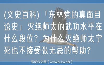 (文史百科)「東林黨的真面目論史」滅絕師太的武功水平在什么段位?為什么滅絕師太寧死也不接受張...