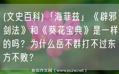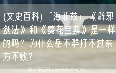 易優(yōu)作文網(wǎng)——(文史百科)「海菲茲」《辟邪劍法》和《葵花寶典》是一樣的嗎?為什么岳不群打不過(guò)東方不敗?