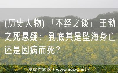 易優(yōu)作文網(wǎng)——(歷史人物)「不經(jīng)之談」王勃之死懸疑:到底其是墜海身亡還是因病而死?