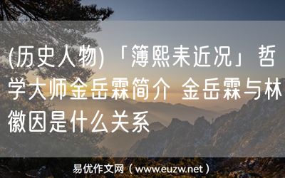 易優(yōu)作文網——(歷史人物)「簿熙耒近況」哲學大師金岳霖簡介 金岳霖與林徽因是什么關系