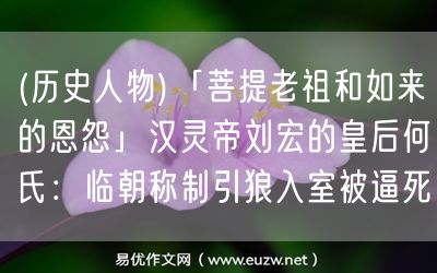 易優(yōu)作文網(wǎng)——(歷史人物)「菩提老祖和如來(lái)的恩怨」?jié)h靈帝劉宏的皇后何氏:臨朝稱(chēng)制引狼入室被逼死