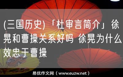 易優(yōu)作文網(wǎng)——(三國歷史)「杜審言簡介」徐晃和曹操關系好嗎 徐晃為什么效忠于曹操