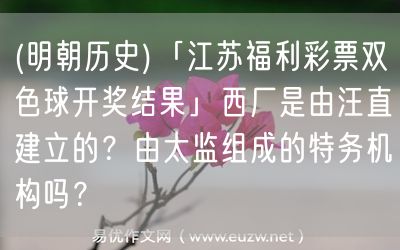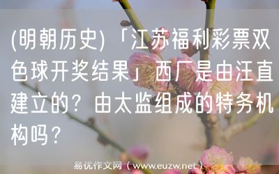 易優(yōu)作文網(wǎng)——(明朝歷史)「江蘇福利彩票雙色球開獎結(jié)果」西廠是由汪直建立的?由太監(jiān)組成的特務(wù)機(jī)構(gòu)嗎?