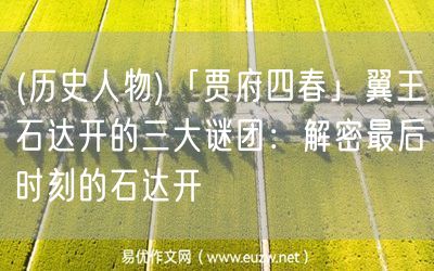 易優(yōu)作文網(wǎng)——(歷史人物)「賈府四春」翼王石達(dá)開的三大謎團(tuán):解密最后時(shí)刻的石達(dá)開