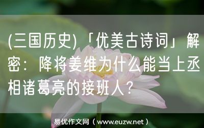 易優(yōu)作文網(wǎng)——(三國歷史)「優(yōu)美古詩詞」解密:降將姜維為什么能當(dāng)上丞相諸葛亮的接班人?