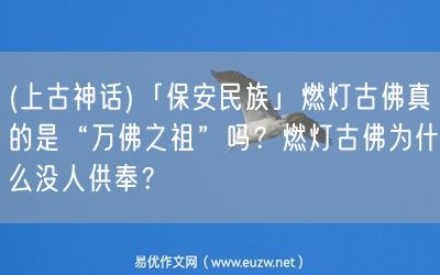 易優(yōu)作文網(wǎng)——(上古神話)「保安民族」燃燈古佛真的是“萬佛之祖”嗎?燃燈古佛為什么沒人供奉?