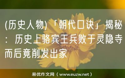 易優(yōu)作文網(wǎng)——(歷史人物)「朝代口訣」揭秘:歷史上駱賓王兵敗于靈隱寺而后竟削發(fā)出家