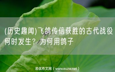 易優(yōu)作文網(wǎng)——(歷史趣聞)飛鴿傳信獲勝的古代戰(zhàn)役何時(shí)發(fā)生?為何用鴿子