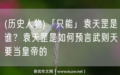 易優(yōu)作文網(wǎng)——(歷史人物)「只能」袁天罡是誰?袁天罡是如何預言武則天要當皇帝的