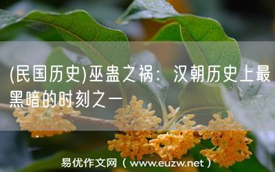 易優(yōu)作文網(wǎng)——(民國歷史)巫蠱之禍:漢朝歷史上最黑暗的時刻之一