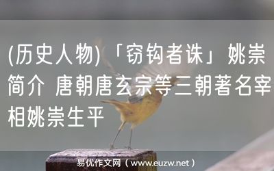 易優(yōu)作文網(wǎng)——(歷史人物)「竊鉤者誅」姚崇簡介 唐朝唐玄宗等三朝著名宰相姚崇生平