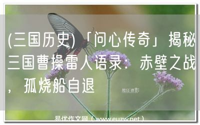 易優(yōu)作文網(wǎng)——(三國(guó)歷史)「問(wèn)心傳奇」揭秘三國(guó)曹操雷人語(yǔ)錄:赤壁之戰(zhàn),孤燒船自退