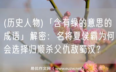 易優(yōu)作文網(wǎng)——(歷史人物)「含有綠的意思的成語」解密:名將夏侯霸為何會選擇歸順殺父仇敵蜀漢?