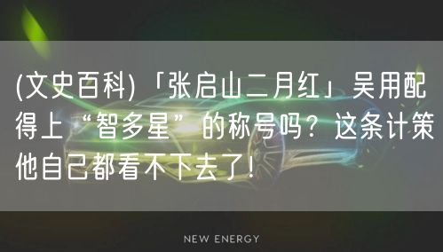易優(yōu)作文網——(文史百科)「張啟山二月紅」吳用配得上“智多星”的稱號嗎?這條計策他自己都看不下去了!