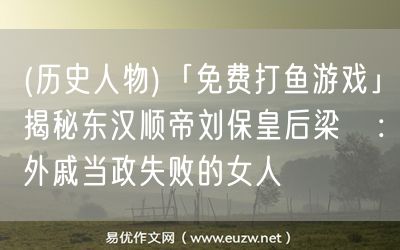 易優(yōu)作文網(wǎng)——(歷史人物)「免費打魚游戲」揭秘東漢順帝劉保皇后梁妠:外戚當政失敗的女人