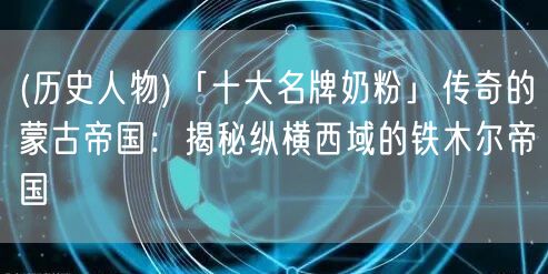 易優(yōu)作文網(wǎng)——(歷史人物)「十大名牌奶粉」傳奇的蒙古帝國:揭秘縱橫西域的鐵木爾帝國