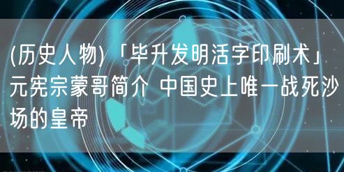(歷史人物)「畢升發(fā)明活字印刷術(shù)」元憲宗蒙哥簡介 中國史上唯一戰(zhàn)死沙場的皇帝