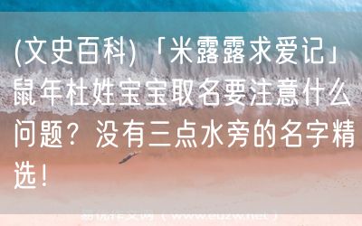 (文史百科)「米露露求愛記」鼠年杜姓寶寶取名要注意什么問題?沒有三點(diǎn)水旁的名字精選!