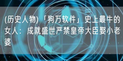 (歷史人物)「狗萬(wàn)軟件」史上最牛的女人:成就盛世嚴(yán)禁皇帝大臣娶小老婆