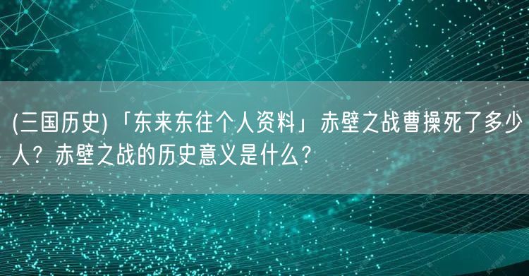 易優(yōu)作文網(wǎng)——(三國歷史)「東來東往個人資料」赤壁之戰(zhàn)曹操死了多少人?赤壁之戰(zhàn)的歷史意義是什么?