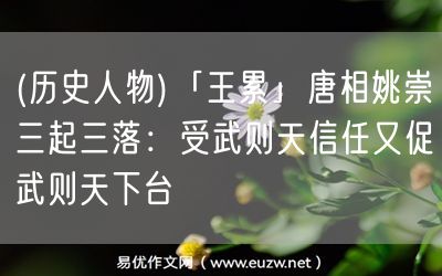 易優(yōu)作文網(wǎng)——(歷史人物)「王累」唐相姚崇三起三落:受武則天信任又促武則天下臺