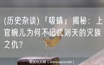 易優(yōu)作文網(wǎng)——(歷史雜談)「吸晴」揭秘:上官婉兒為何不記武則天的滅族之仇?