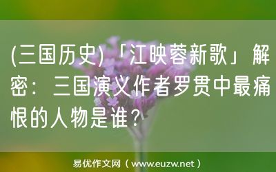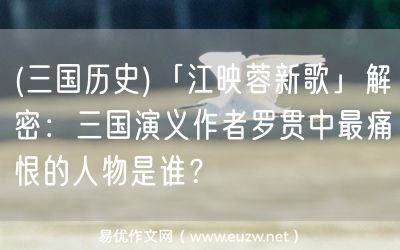 易優(yōu)作文網(wǎng)——(三國歷史)「江映蓉新歌」解密:三國演義作者羅貫中最痛恨的人物是誰?