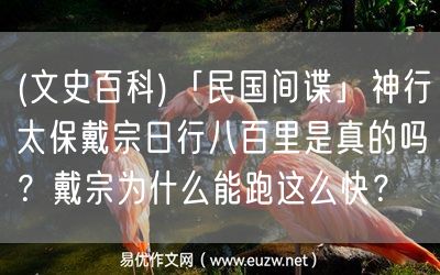 易優(yōu)作文網——(文史百科)「民國間諜」神行太保戴宗日行八百里是真的嗎?戴宗為什么能跑這么快?