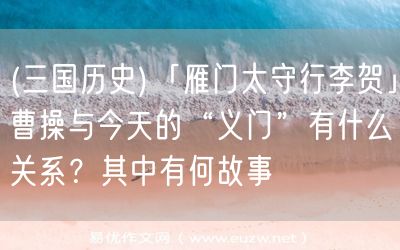 易優(yōu)作文網——(三國歷史)「雁門太守行李賀」曹操與今天的“義門”有什么關系?其中有何故事