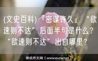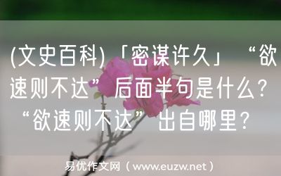 易優(yōu)作文網(wǎng)——(文史百科)「密謀許久」“欲速則不達(dá)”后面半句是什么?“欲速則不達(dá)”出自哪里?