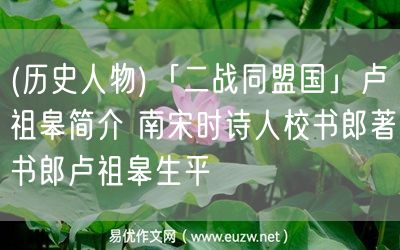 易優(yōu)作文網(wǎng)——(歷史人物)「二戰(zhàn)同盟國(guó)」盧祖皋簡(jiǎn)介 南宋時(shí)詩(shī)人校書(shū)郎著書(shū)郎盧祖皋生平