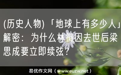 易優(yōu)作文網(wǎng)——(歷史人物)「地球上有多少人」解密:為什么林徽因去世后梁思成要立即續(xù)弦?