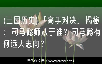 易優(yōu)作文網(wǎng)——(三國歷史)「高手對決」揭秘:司馬懿師從于誰?司馬懿有何遠大志向?