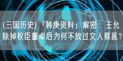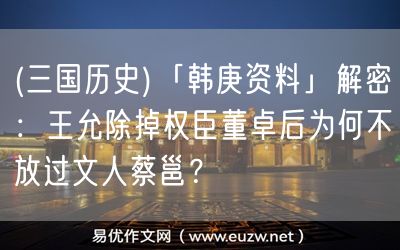 易優(yōu)作文網(wǎng)——(三國歷史)「韓庚資料」解密:王允除掉權(quán)臣董卓后為何不放過文人蔡邕?