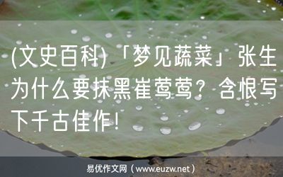 易優(yōu)作文網(wǎng)——(文史百科)「夢見蔬菜」張生為什么要抹黑崔鶯鶯?含恨寫下千古佳作!