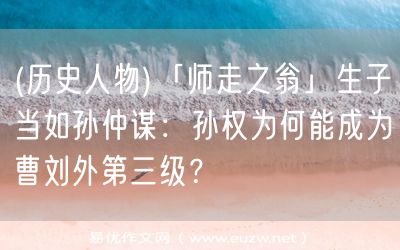 易優(yōu)作文網(wǎng)——(歷史人物)「師走之翁」生子當(dāng)如孫仲謀:孫權(quán)為何能成為曹劉外第三級(jí)?