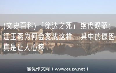 易優(yōu)作文網(wǎng)——(文史百科)「徐達(dá)之死」絕代雙驕:江玉燕為何會(huì)變成這樣,其中的原因真是讓人心疼