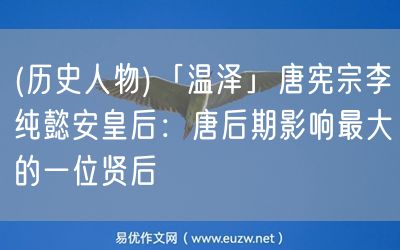 易優(yōu)作文網(wǎng)——(歷史人物)「溫澤」唐憲宗李純懿安皇后:唐后期影響最大的一位賢后