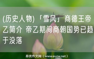 易優(yōu)作文網(wǎng)——(歷史人物)「雪風(fēng)」商德王帝乙簡介 帝乙期間商朝國勢已趨于沒落
