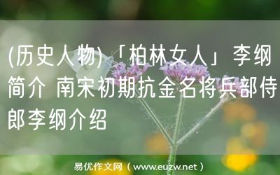 易優(yōu)作文網(wǎng)——(歷史人物)「柏林女人」李綱簡介 南宋初期抗金名將兵部侍郎李綱介紹