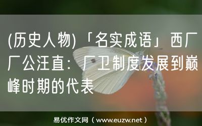 易優(yōu)作文網(wǎng)——(歷史人物)「名實(shí)成語」西廠廠公汪直:廠衛(wèi)制度發(fā)展到巔峰時(shí)期的代表